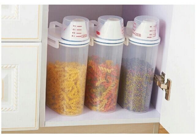 「ノーブランド品」密閉米びつ2kg/保存容器/計量カップ付き!