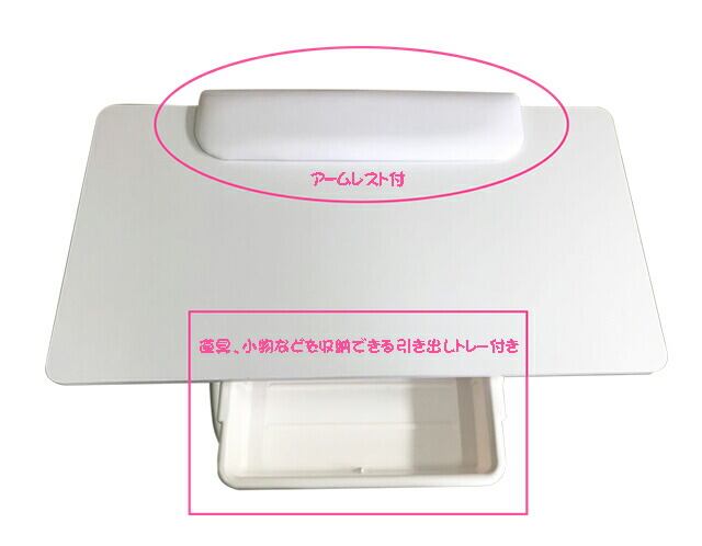 【在庫処分】ネイルテーブル折りたたみ式/アームレスト付/キャスターストッパー付き/組立不要