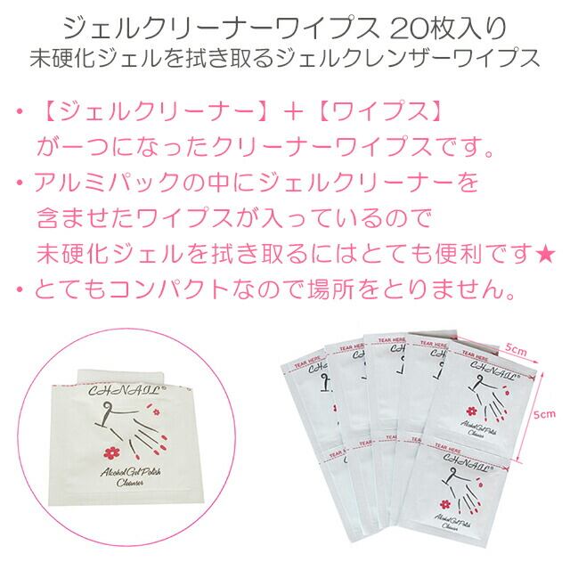 ジェルクリーナーワイプス/未硬化ジェルを拭き取るジェルクレンザーワイプス【20枚入り】