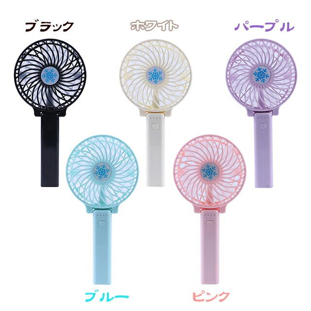 充電式ハンディーファン/ミニ扇風機/携帯ファン/3段階の風量調節/LED照明付き!/選べる5色!