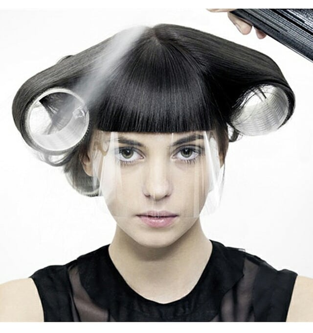 ・前髪を切る時はフェイスシールドを直接おでこに貼り付けても大丈夫です。