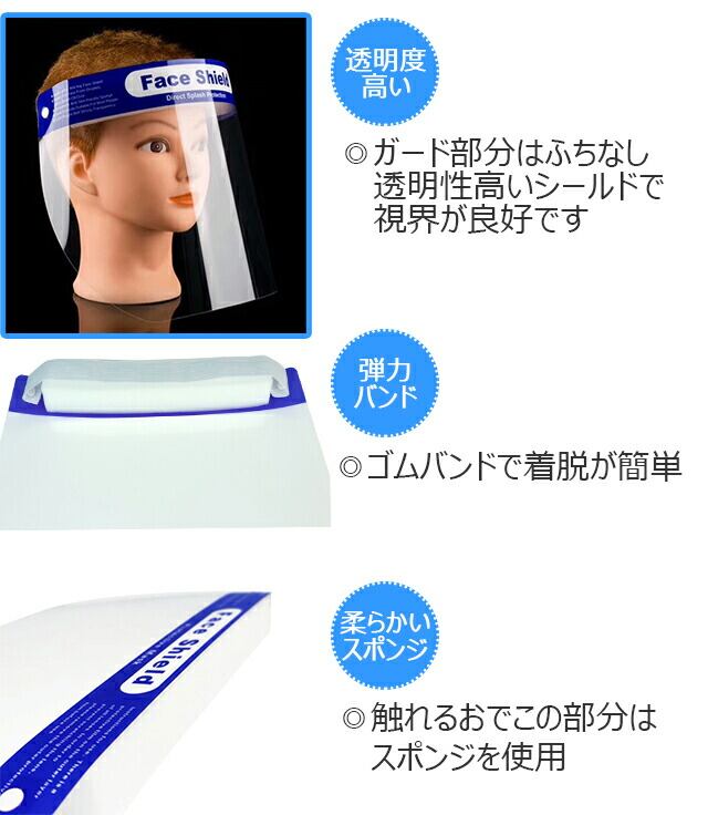 ・触れるおでこの部分はスポンジを使用し、顔とシールドの空間に余裕があり、違和感なく使用可能。