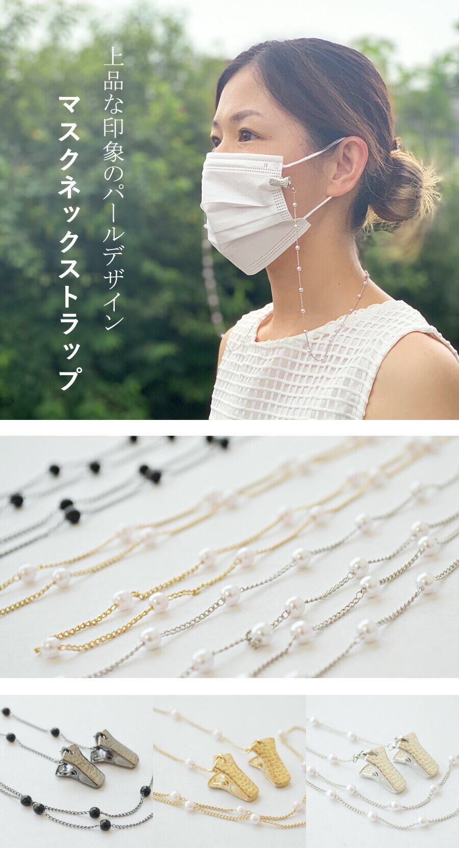 マスクストラップ 【パールタイプ】マスク ネックストラップ 紐 便利な 首 大人 子供 兼用 マスク保管 アウトドア 外出 マスクネックストラップ ひも ヒモ ストラップ 散歩 休憩 化粧 トイレ 釣り 運転中 ドライブ
