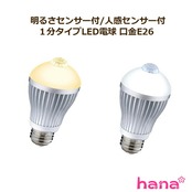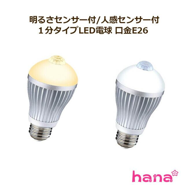 明るさセンサー付/人感センサー付/1分タイプ6W LED電球【E26LED電球/電球色/昼白色】(3個以上送料無料)
